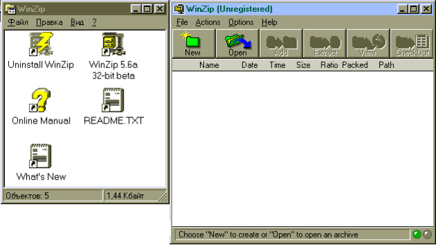 Так как ничто не стоит на месте, также и ZIP дополняется и совершенствуется, приобретая все более современные черты присущие программам нашего времени. С учетом глобального перехода на операционную систему WINDOWS создатели ZIP’a предложили также версию работающую под WINDOWS. Вот пример ее графического интерфейса: