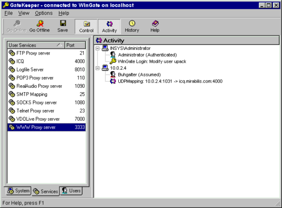 Internet и получать ответы обратно . При этом, Wingate 3.0.х предоставляет в использование удобные сетевые средства подсчета траффика, разграничения доступа пользователей в Сеть, а так же кэшируюший прокси-сервер. В сочетании удобным win – интерфейсом урпавления GateKeeper этот маршрутизатор является легким в освоении, удобным и простым в использовании.