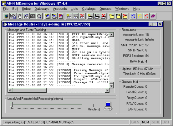 Для приема- отправки почты был установлен Mdaemon. Это почтовый сервер, обладающий большим набором сервисных функций.