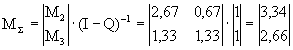 Если необходимо получить общее среднее количество раз попадания системы в то или иное состояние до поглощения, то фундаментальную матрицу М необходимо умножить справа на вектор-столбец, элементами которого будут единицы, то есть