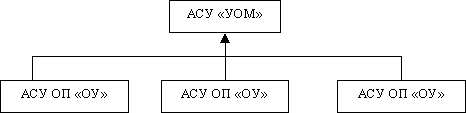Связь между АСУ "УОМ" и АСУ ОП "Школа" планируется и обеспечивается на уровне содержания и структур баз данных. Это необходимо, т.к. информации, существующей на уровне АСУ, недостаточно для глубокого анализа ситуации и принятия оптимальных решений.