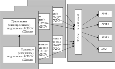 С другой стороны, анализ технического задания на создание автоматизированной системы от 1 августа 1995г. показывает: первоначально планировалось, что она будет более близка к АСУ подразделения крупного предприятия. Согласно техническому заданию, она должна была прежде всего обеспечивать документооборот в подсистеме общего образования и представлять собой совокупность взаимосвязанных автоматизированных рабочих мест (АРМов) специалистов системы образования: