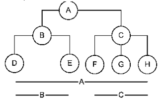 Данная структура является модификацией структуры для хранения иерархии с неограниченным уровнем вложенности и количеством потомков. В структуру добавлены поля LOW и HIGH для хранения начала и конца диапазона первичных ключей всех потомков данного элемента. Такая иерархия может быть представлена набором отрезков (см. рисунок). Это позволяет быстро и легко выбрать всех потомков данного элемента. Данную структуру назовем структурой с хранением границ ветви.