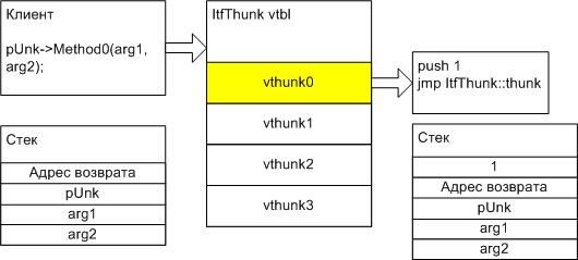 Использовать перехватчик очень просто – клиент передает указатель на настоящий интерфейс конструктору ItfThunk и затем использует ItfThunk в качестве указателя: