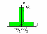 Теперь устремим величину к нулю. Импульс, сокращаясь по длительности, сохраняет свою площадь, поэтому его высота должна неограниченно возрастать. Предел последовательности таких функций при 0 носит название дельта-функции , или функции Дирака0 :