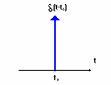 Дельта функция - интересный математический объект. Будучи равной нулю всюдю, кроме как в точке t = 0 0 дельта-функция тем не менее обладает единичным интегралом. А вот так выглядит символическое изображение дельта-функции :