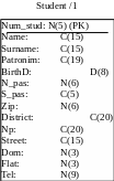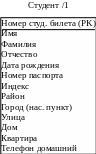 | 1 | Номер студ. билета | Num_stud | PK | NUMERIC | 5 |