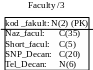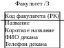 | 3 | Код факультета | Kod facul | FK | NUMERIC | 2 |