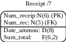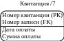 | 1 | Номер квитанции | num receipt | PK | NUMERIC | 6 |