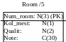| 1 | Номер комнаты | Num room | PK | NUMERIC | 3 |