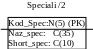 | 1 | Код специальности | kod spec | PK | NUMERIC | 5 |