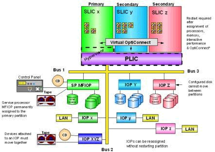 Эта система называется System Products Division (SPD). Скорость обмена данными по ней превышает 25-36 MB/s. В одном сервере таких систем I/O может быть от 1 до 19.