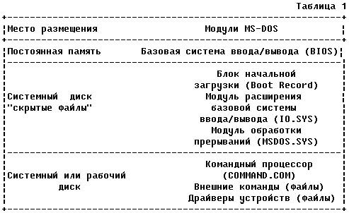 MS-DOS состоит из следующих основных модулей:
