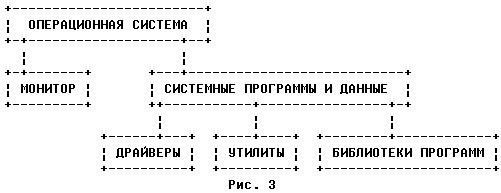 Независимо от типа операционная система чаще всего состоит из относительно компактного ядра - монитора (супервизора) и и набора системных программ и данных. Состав операционной системы предоставлен на рис.3.