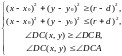 где C=(x0, y0) - центр дуги, вокруг которой вводится пространственная окрестность,