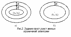 Как видно из сравнения формул (1.а, 1.б) и формул (2.а, 2.б), задание пространственных ограничений эллипсами аналогично предыдущему случаю, поэтому здесь справедливо все вышесказанное по отношению к ограничениям окружностями.