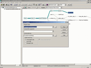 Рисунок 1 показывает действия после выбора «File->Run», в результате которого можно выбрать имя внешнего модуля и аргументы его вызова.