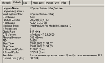 QuantifySetThreadName. Функция позволяет разработчикам именовать потоки в произвольном именном поле. По умолчанию Quantify дает имена, наподобие «thread_1», что может не всегда положительно сказываться на читаемости получаемой информации;