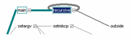Тестеры или разработчики, увидев диаграмму вызовов, выделят функцию, находящуюся в полукруге, что является признаком рекурсивного вызова (см. рисунок).