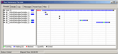Рисунок 3 демонстрирует фрагмент окна «Summary», в котором производится запись состояния тестируемого приложения. Причем, что очень примечательно, тестирование производится не только для простого приложения, но и для много поточного. В последнем случае (см. рисунок 3), тестируется каждый поток отдельно. В любом случае, даже если приложение однопоточное, то имя основного (единственного) потока именуется как «.main_0», что представляется вполне логичным.