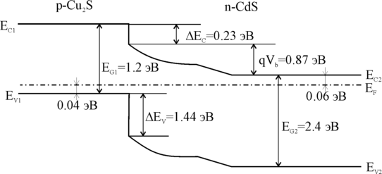 Большое количество моделей, объясняющих процессы в гетеропереходах CdS-Cu2S, обусловлено различной технологией их получения, нестабильностью гетеропереходов в процессе работы, деградацией характеристик и другими причинами [3].
