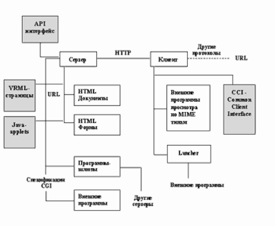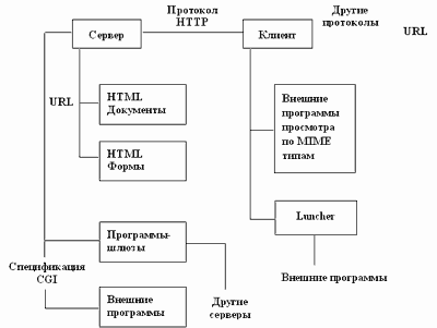 Рис. 2. Архитектура World Wide Web к середине 1996 года