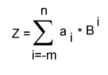 Значение числа Z = an an-1 ... a0 a-1 ... a-m в позиционной системе счисления по основанию B имеет вид: