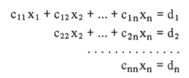 При решении методом Гаусса исходные уравнения преобразуют таким образом, что матрица коэффициентов содержит нули ниже главных диагоналей. Для этого используются операции сложения и вычитания уравнений, а также умножения их на число. При этом система принимает вид:
