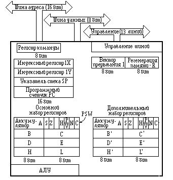 К данному типу архитектуры относится микропроцессор фирмы Zilog. Процессор Z80 - детище фирмы Zilog помимо расширенной системы команд, одного номинала питания и способности исполнять программы, написанные для i8080, имел архитектурные "изюминки".