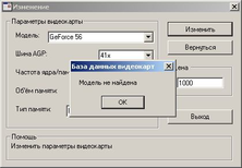 Изменение видеокарты происходит с помощью поиска модели видеокарты, если видеокарта не найдена появляется окно "Модель не найдена". Как и в форме добавления есть защита от пустого ввода.