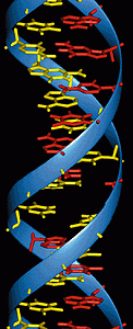 ак известно, в живых клетках генетическая информация закодирована в молекуле ДНК (дезоксирибонуклеиновой кислоты). ДНК - это полимер, состоящий из субъединиц, называемых нуклеотидами. Нуклеотид представляет собой комбинацию сахара (дезоксирибозы), фосфата и одного из четырех входящих в состав ДНК азотистых оснований: аденина (А), тимина (Т), гуанина (G) и цитозина (C). Молекула ДНК образует спираль, состоящую из двух цепей, объединенных водородными связями. При этом основание А одной цепи может соединяться водородными связями только с основанием Т другой цепи, а основание G - только с основанием С. То есть, имея одну из цепей ДНК, всегда можно восстановить строение второй. Благодаря этому фундаментальному свойству ДНК, получившему название комплементарности, генетическая информация может точно копироваться и передаваться от материнских клеток к дочерним. Репликация молекулы ДНК происходит за счет работы специального фермента ДНК-полимеразы. Этот фермент скользит вдоль ДНК и синтезирует на ее основе новую молекулу, в которой все основания заменены на соответствующие парные. Причем фермент начинает работать только если к ДНК прикрепился коротенький кусочек-затравка (праймер). В клетках существует также родственная молекуле ДНК молекула матричной рибонуклеиновой кислоты (РНК). Она синтезируется специальным ферментом, использующим в качестве образца одну из цепей ДНК, и комплементарна ей. Именно на молекуле РНК в клетке, как на матрице, с помощью специальных ферментов и вспомогательных факторов происходит синтез белков. Молекула РНК химически устойчивее, чем ДНК, поэтому экспериментаторам с ней работать удобнее. Последовательность нуклеотидов в цепи ДНК/РНК определяет генетический код. Единицей генетического кода - кодоном - является последовательность из трех нуклеотидов.