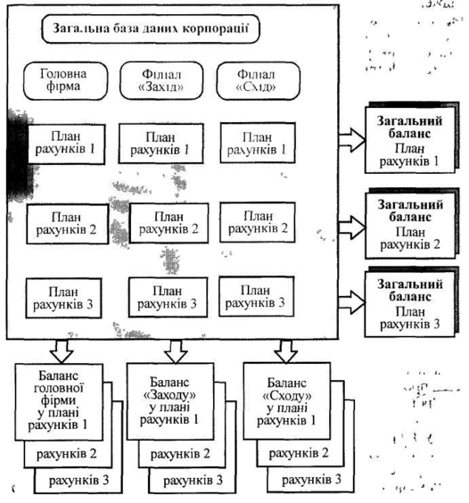 встановлювати потрібний йому план рахунків, вид консолідованих звітів. Для кожного виду визначається набір філій, що