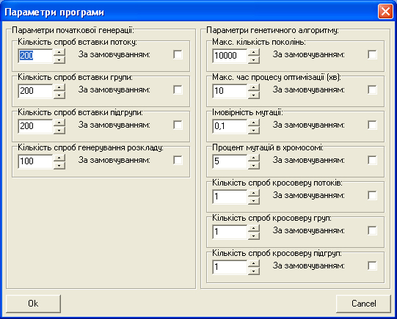 Параметри генетичного алгоритму.