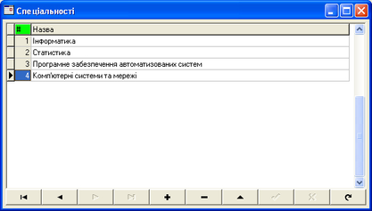 Рис. 6.4. Форма "Спеціальності"