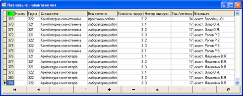 Рис. 6.7. Форма "Навчальне навантаження"