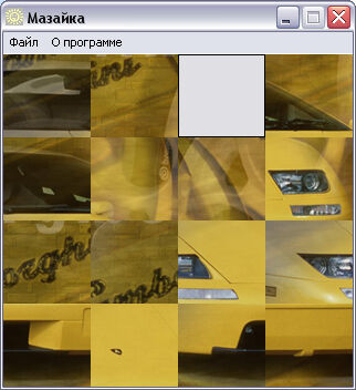 Приложение представляет собой игру «Мазайка», для которой не требуется особое оформление в связи с тем, что рабочее поле полностью закрывается загруженной картинкой. Игра затягивает пользователя, прежде всего популярностью близкой игры «Пятнашки», которая не так давно была очень популярна.