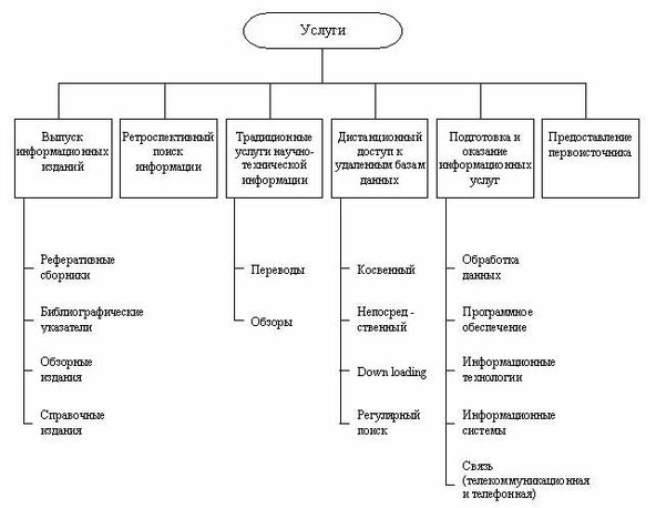Исходя из возможных видов информационных продуктов, баз данных и ресурсов классификация информационных услуг представлена на рис. 1.
