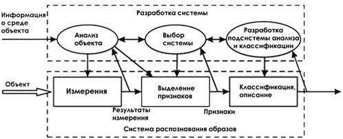 С более общих позиций можно утверждать, и это вполне очевидно, что в повседневной деятельности человек постоянно сталкивается с задачами, связанными с принятием решений, обусловленных непрерывно меняющейся окружающей обстановкой. В этом процессе принимают участие: органы чувств, с помощью которых человек воспринимает информацию извне; центральная нервная система, осуществляющая отбор, переработку информации и принятие решений; двигательные органы, реализующие принятое решение. Но в основе решений этих задач лежит, в чем легко убедиться, распознавание образов [8, c. 197].
