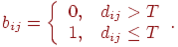 Побудуємо матрицю відстаней D між значеннями атрибутів вихідного зображення. Як відстань можна взяти квадрат евклідової метрики. Потім виберемо число T - поріг. Після цього побудуємо матрицю B по матриці D за наступним правилом: