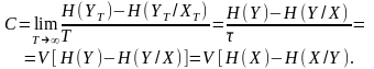 I(YT, XT) = H(XT) – H(XT/YT) = H(YT) – H(YT/XT) = n [H(Y) – H (Y/X). (9)