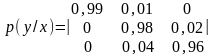 . Определить количество информации принятой при передаче 300 символов, если влияние помех описывается канальной матрицей: