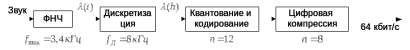 разрядов. Результатом преобразования является двоичная последовательность, передаваемая со скоростью 64 кбит/с.