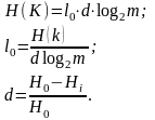 d – збитковість мови (під надмірністю d розуміється ступінь корельованості (залежності) символів у мові і не порівняно ймовірностні їхньої появи в повідомленні);
