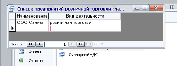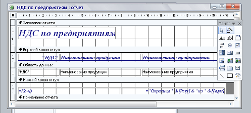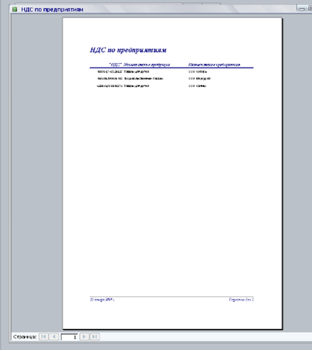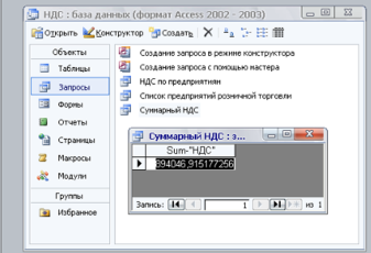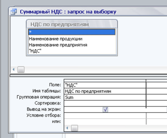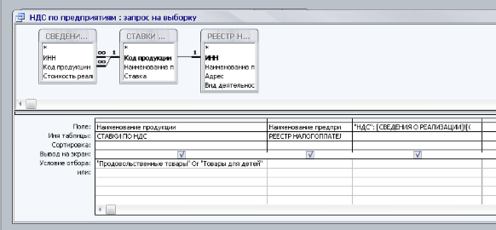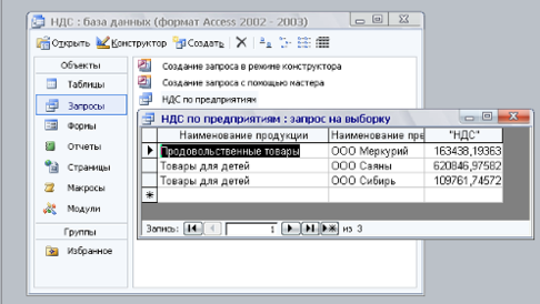 В качестве еще одного примера использования возможностей СУБД создадим отчет по запросу НДС по предприятиям промышленных и детских товаров