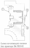 По-разному выполнены и печатающие головки line-принтеров Genicom, Oki и Tally. Genicom предлагает иголку - сердечник мощного соленоида. Tally - по-немецки отработанную конструкцию микромолоточков, Oki - трехмерный hammerbank (банк молоточков) пятого поколения. (рис. Схема печатающей головки line-принтера Oki MX140) Импульс тока, проходящий через катушку (1) электромагнита, заставляет молоточек (2) ударять по красящей ленте, а пружина (3) возвращает его на место).