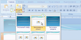 Далее следует Создание слайда, Рисунок 3, и последующие несложные действия, такие, как вставка рисунка, подписей и повествований, организационной диаграммы или простой анимации.
