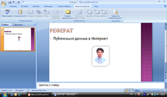 В Microsoft Office для этого имеется превосходное средство - PowerPoint. С помощью этой программы можно подготовить выступление с использованием слайдов, которые потом можно напечатать на прозрачных пленках, бумаге, 35-миллиметровых слайдах или просто демонстрировать на экране компьютера или проекционного экрана, можно также создать конспект доклада и материал для раздачи слушателям.