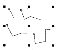 Выбранная группа объектов окружается маркерами выделения, а в каждом из выбранных объектов выделяется первый узел.