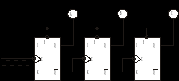 Рассмотрим схему 3‑разрядного счетчика по модулю 8 (рис.13.4). Все синхронизирующие входы триггеров (C) соединены параллельно, тактовые импульсы поступают непосредственно на синхронизирующий вход каждого триггера.