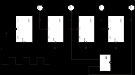 Счётчик по модулю 10 считает от 0000 до 1001 (от 0 до 9 в десятичной системе), т.е. до черты в табл.13.1. Для построения такого счётчика трёх триггеров недостаточно (10>23), поэтому он содержит 4 триггера, но имеет обратные связи, останавливающие счёт при коде 9=1001. На рис.13.3 показана схема счётчика по модулю 10, в которую кроме 4 триггеров включён логический элемент И‑НЕ, для установки всех триггеров в нулевое состояние (очистки счетчика) с приходом десятого импульса.
